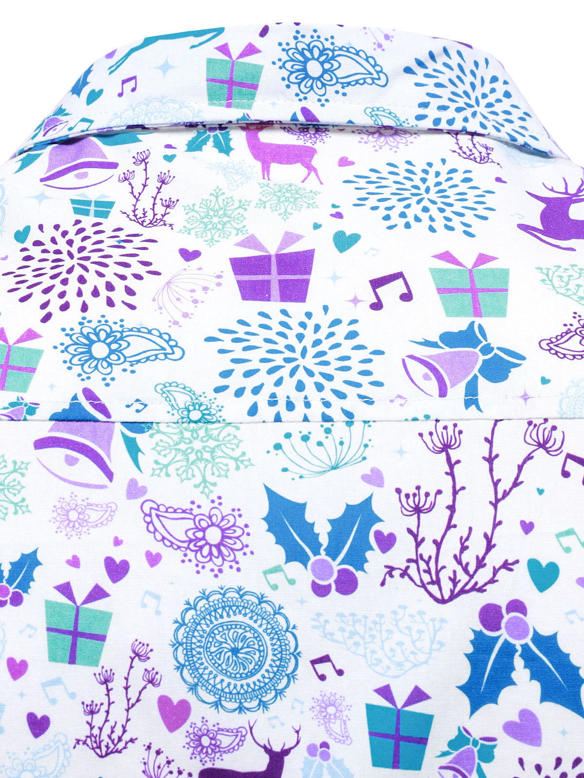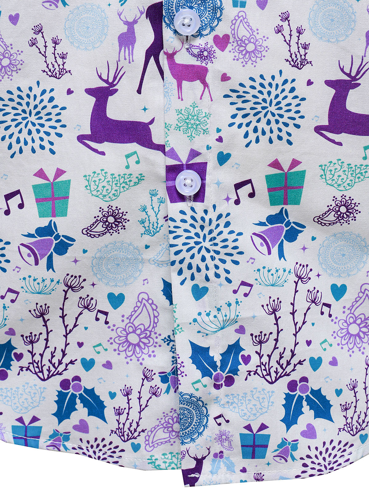 Herre Jule Rensdyr Festlig Print Xmas Ferie Hvid Langærmet Skjorte